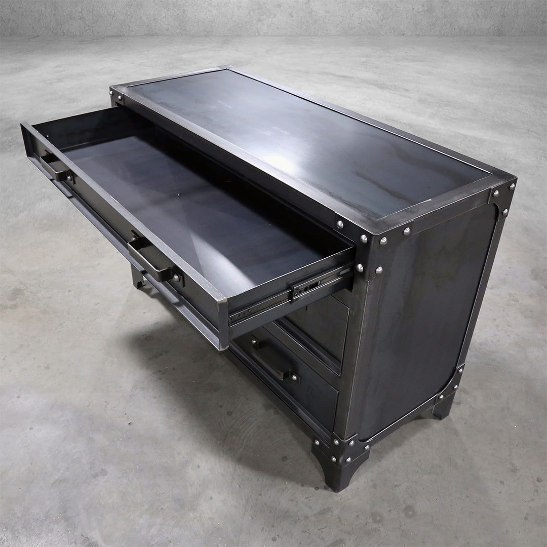 Made entirely out of mild steel, this industrial style "GrandView" dresser has the look and feel of an aged vintage antique from the 1920's 1930's.