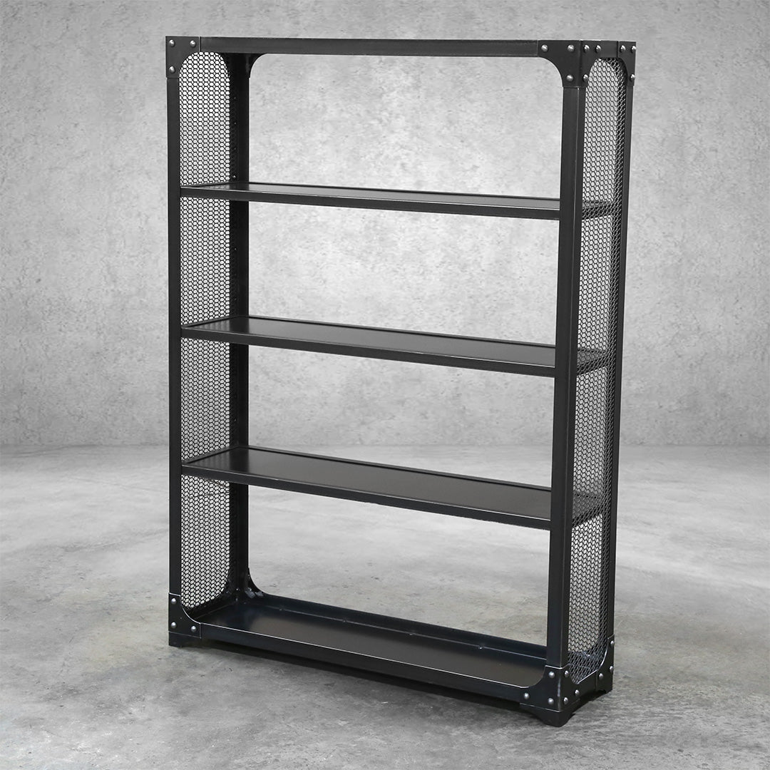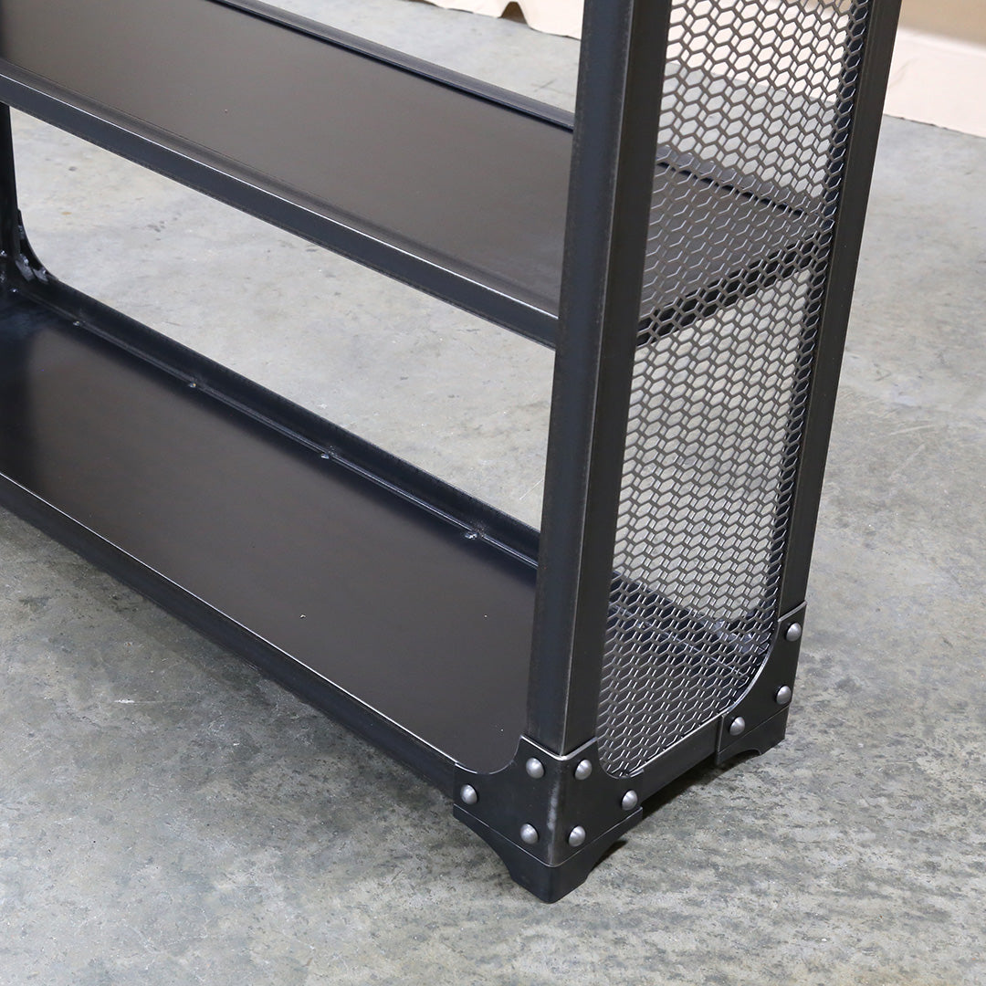 Modern Industrial bookcase with decorative steel mesh and steel shelves. A truly unique and original piece perfect for your home or office.