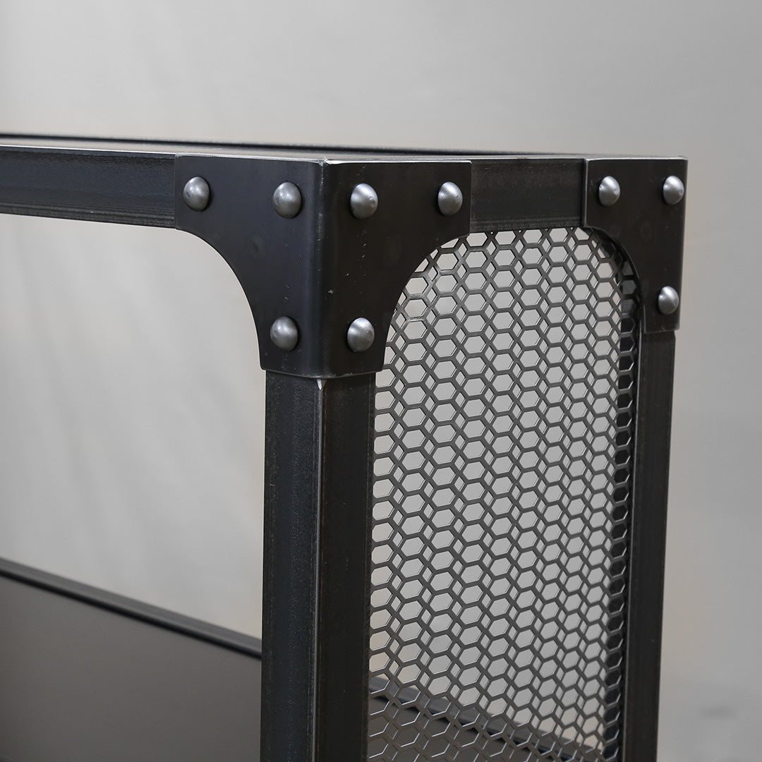 - Angle iron frame with decorative steel mesh